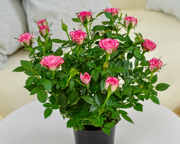 В мире горшечная роза прославилась благодаря своей пышности, необычайной красоте и обильному цветению. Немаловажен и тот факт, что в этой розе генетически заложен продолжительный срок цветения. Особенные миниатюрные розы были выведены селекционерами для использования в жилых помещениях, однако эти растения подходят для содержания в садах, на террасах, балконах, патио, для высаживания в керамические кашпо на улице. Кроме того, этот цветок с каждым днем завоевывает все большую любовь флористов, которые часто используют розу во флористических работах в качестве эффектного акцента. Изысканные подарочные композиции, стильные интерьерные аранжировки для офиса, дома, ресторана или отеля, использование для оформления праздничных мероприятий — миниатюрная стойкая роза хороша всегда и везде.